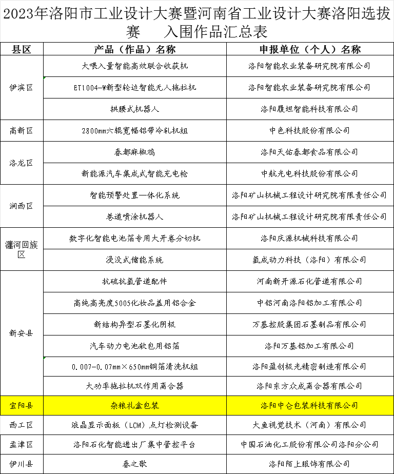 1月16日,中侖包裝收獲了2024年的一個榮譽與肯定,在2023年洛陽市工業(yè)設計大賽暨河南省工業(yè)設計大賽洛陽選拔賽中,中侖包裝的設計作品從全市100多件參賽作品中突圍而出,與此次參賽的其它19個參賽的高校、院企作品一道,成功晉級河南省工業(yè)設計大賽決賽。